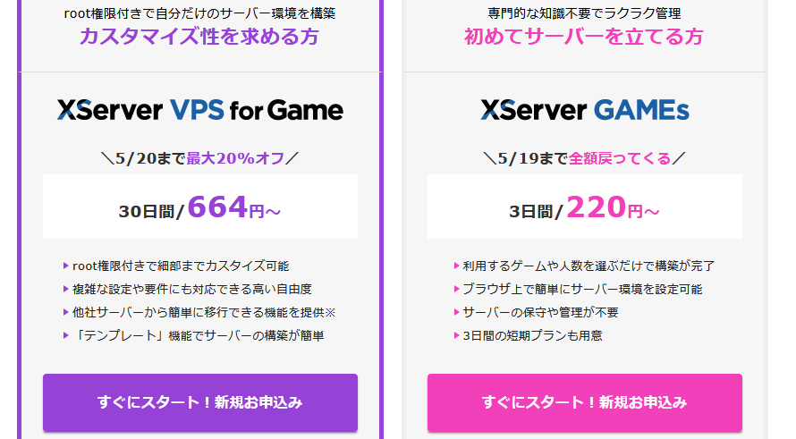- マルチプレイに特化したゲーム専用サーバー XServer VPS for Game